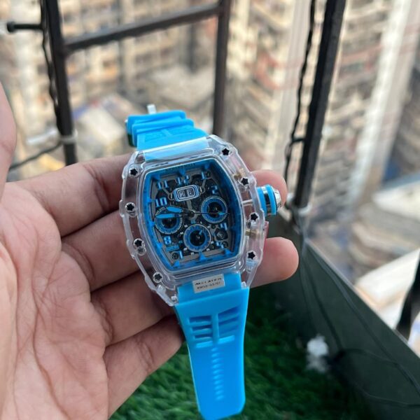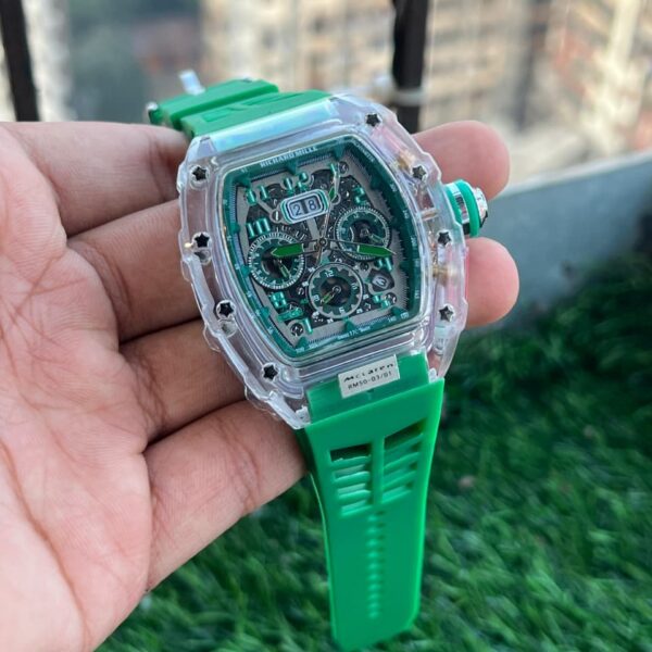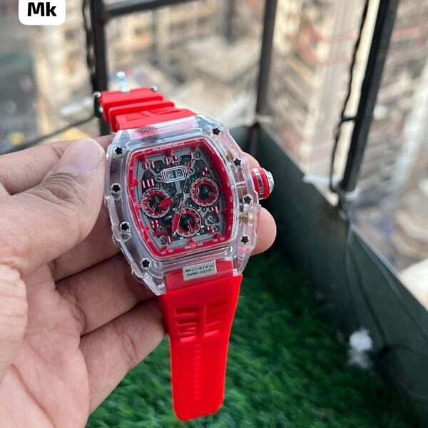 Inside the collection, you’ll find watches based on popular RM models such as RM 011, RM 035, RM 055, RM 030, RM 67-01, and RM 35-02. These designs often feature skeleton-style displays, rubber straps, metal cases, and bold colour combinations. You can choose from black, silver, red, blue, and other tones that match your personality and outfit choices.