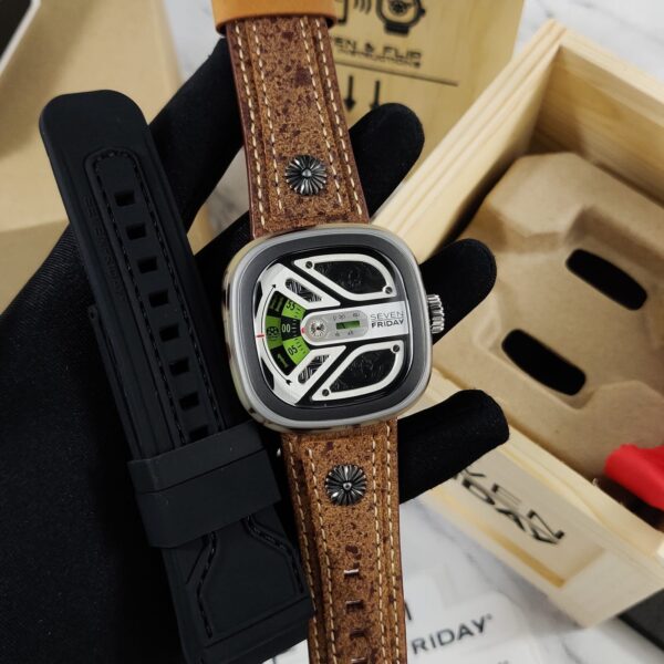 Seven Friday first copy watches are known for their unique square cases and industrial-style dials. Unlike traditional round watches, these designs focus on layered details, open-style displays, and strong visual depth. This category includes popular models such as Seven Friday P-Series, M-Series, Q-Series, T-Series, and V-Series.
