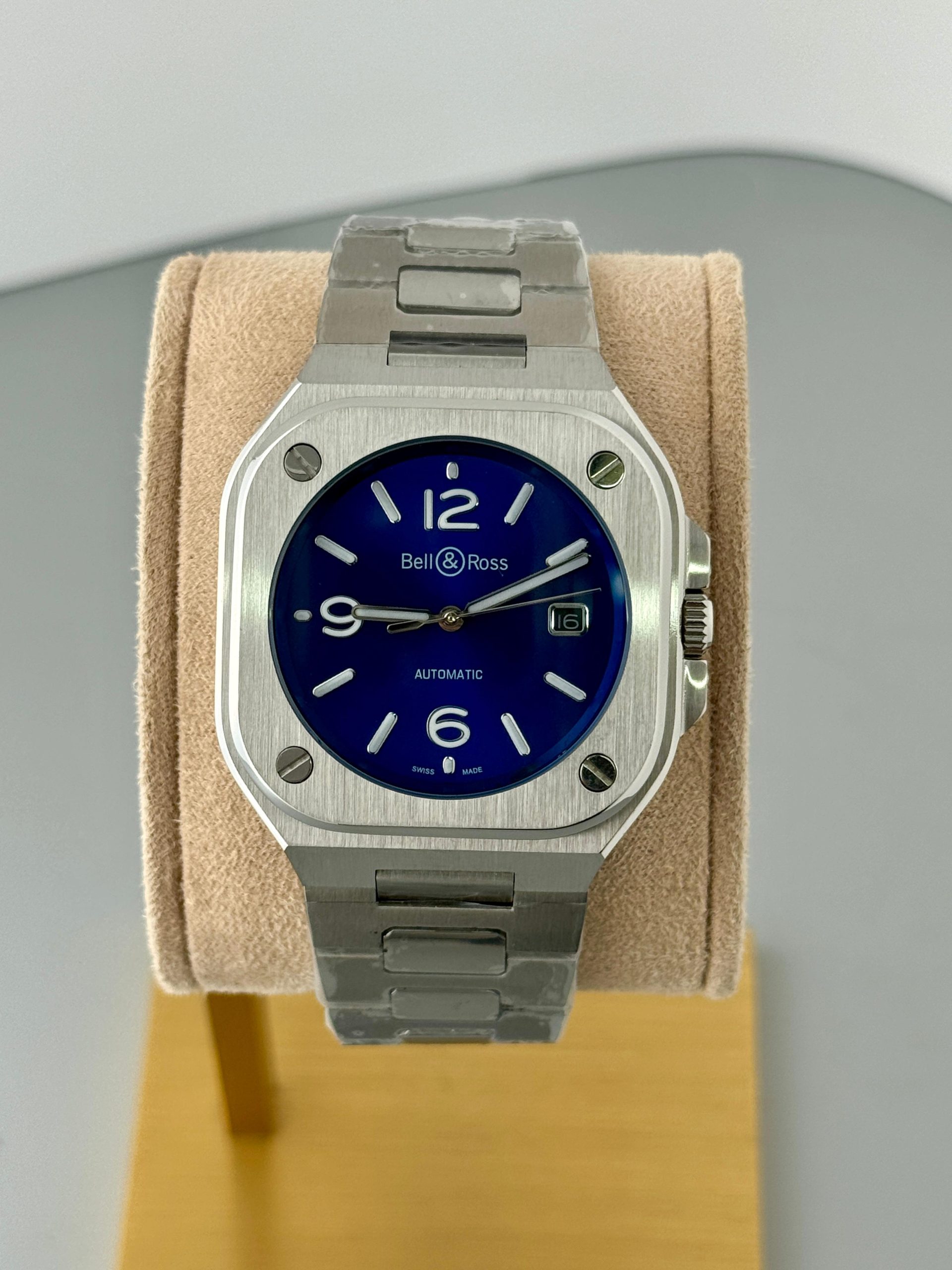 This Bell & Ross BR05 Urban Automatic features a striking blue dial and robust stainless steel case, ensuring style and functionality for any occasion.