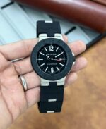 The Bvlgari Diagono Titanium features a striking black dial, high-quality quartz movement, and an adjustable silicone strap for a perfect fit.
