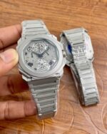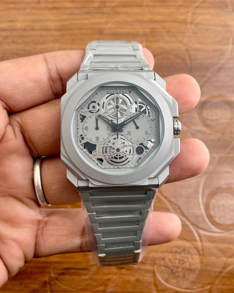 With original Japanese quartz machinery at its heart, this timepiece delivers reliability and precision. Whether you’re dressing up for a formal event or heading out for a casual day, the Bvlgari Octo Grey Chronograph is a stylish companion that complements any outfit.