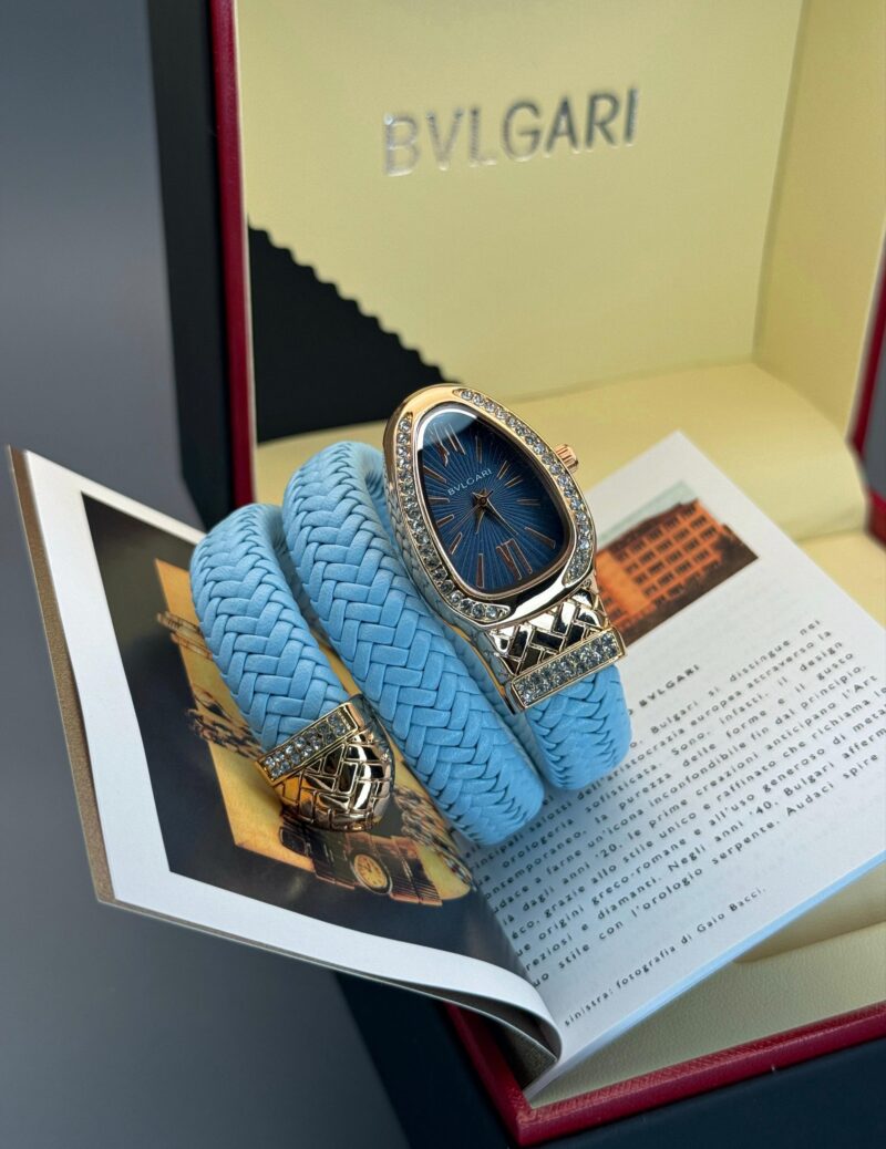 The standout feature, the blue braided leather strap, not only offers comfort but also enhances the overall aesthetic, making it ideal for both casual and formal occasions. With its heavy-duty construction, the Bvlgari Serpenti Snake is built to last, providing value and style to any watch collection.