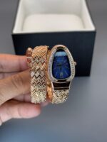 The Bvlgari Snake Oval Blue Dial is a captivating addition to any collection, combining elegance and functionality. The stunning oval blue dial is complemented by a rose gold snake bracelet, creating a piece that is as much a work of art as it is a reliable timepiece. With its quartz movement, you can trust that you’ll always be on time, while the sapphire glass ensures that this beauty withstands the test of time.