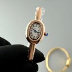 The Cartier Baignoire Bangle Rose Gold Ladies Quartz watch is a stunning piece that beautifully blends elegance and functionality. Its unique oval shape gives it a distinctive silhouette, while the soft rose gold finish adds a touch of warmth to any outfit. Whether you’re dressing up for a special occasion or looking for an everyday accessory, this watch fits the bill.