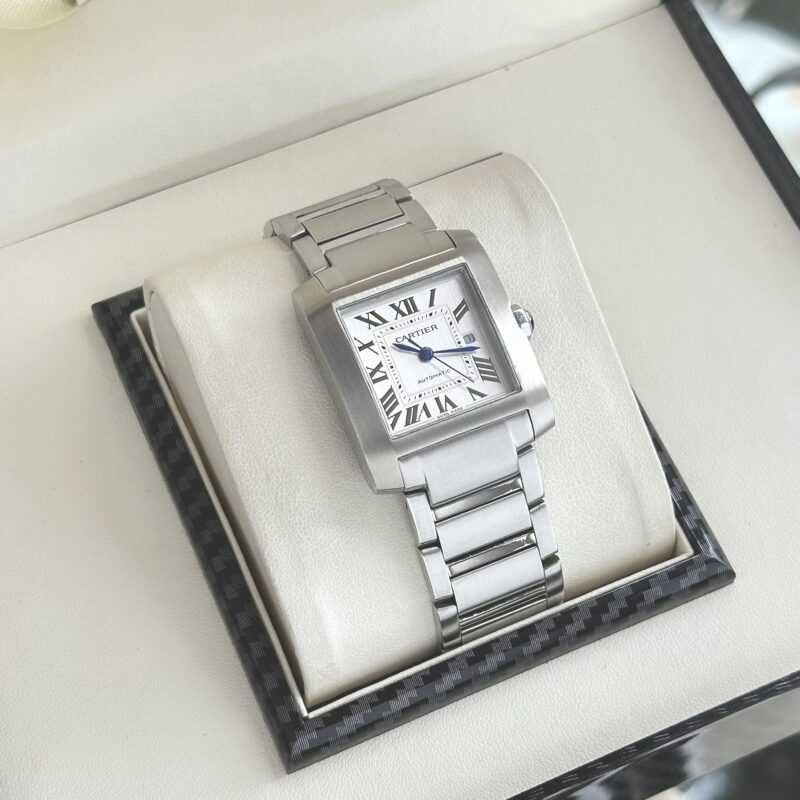 The Cartier Tank Francaise Silver White Dial is a stunning piece that perfectly blends elegance and functionality. Its rectangular shape and classic design make it a versatile accessory for any occasion, whether you’re dressing up for a formal event or going casual for the day.