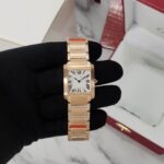 The Cartier Tank Francaise WGTA0029 Rosegold is a stunning timepiece designed for women who appreciate elegance and precision. With its rose gold stainless-steel case and anti-reflective sapphire glass, this watch not only looks exquisite but is built to last. The white dial features striking blue diamond-shaped hands that add a pop of color, making it a perfect blend of functionality and style.