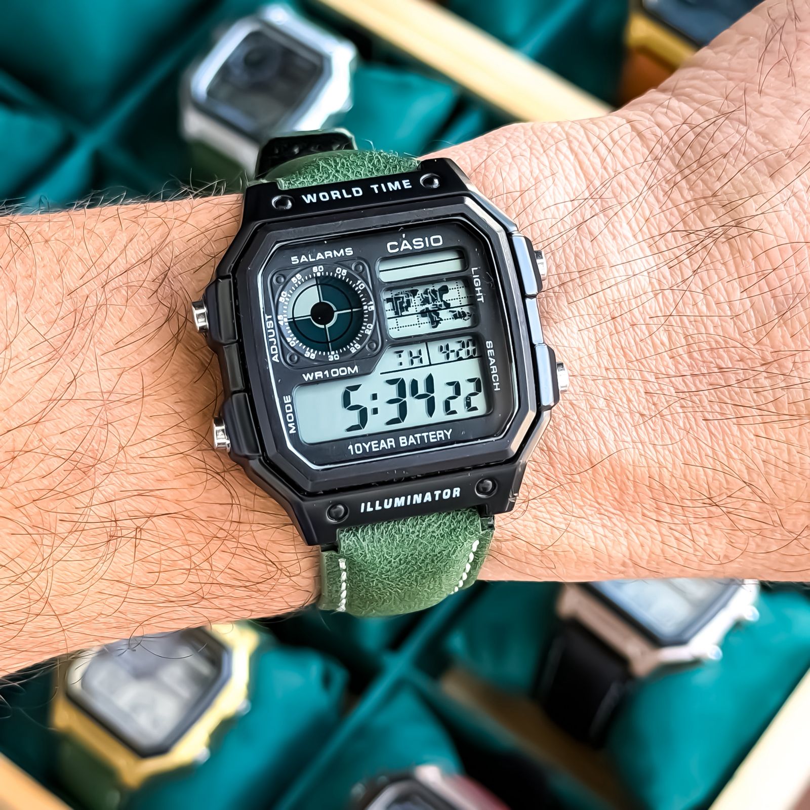 • Smart fit green leather belt with Casio marking