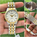 Whether you’re heading to a business meeting or a special event, the two-tone stainless steel band complements any outfit while ensuring comfort with its adjustable clasp. It features a reliable quartz movement, ensuring accurate timekeeping powered by a high-end battery-operated machine.