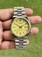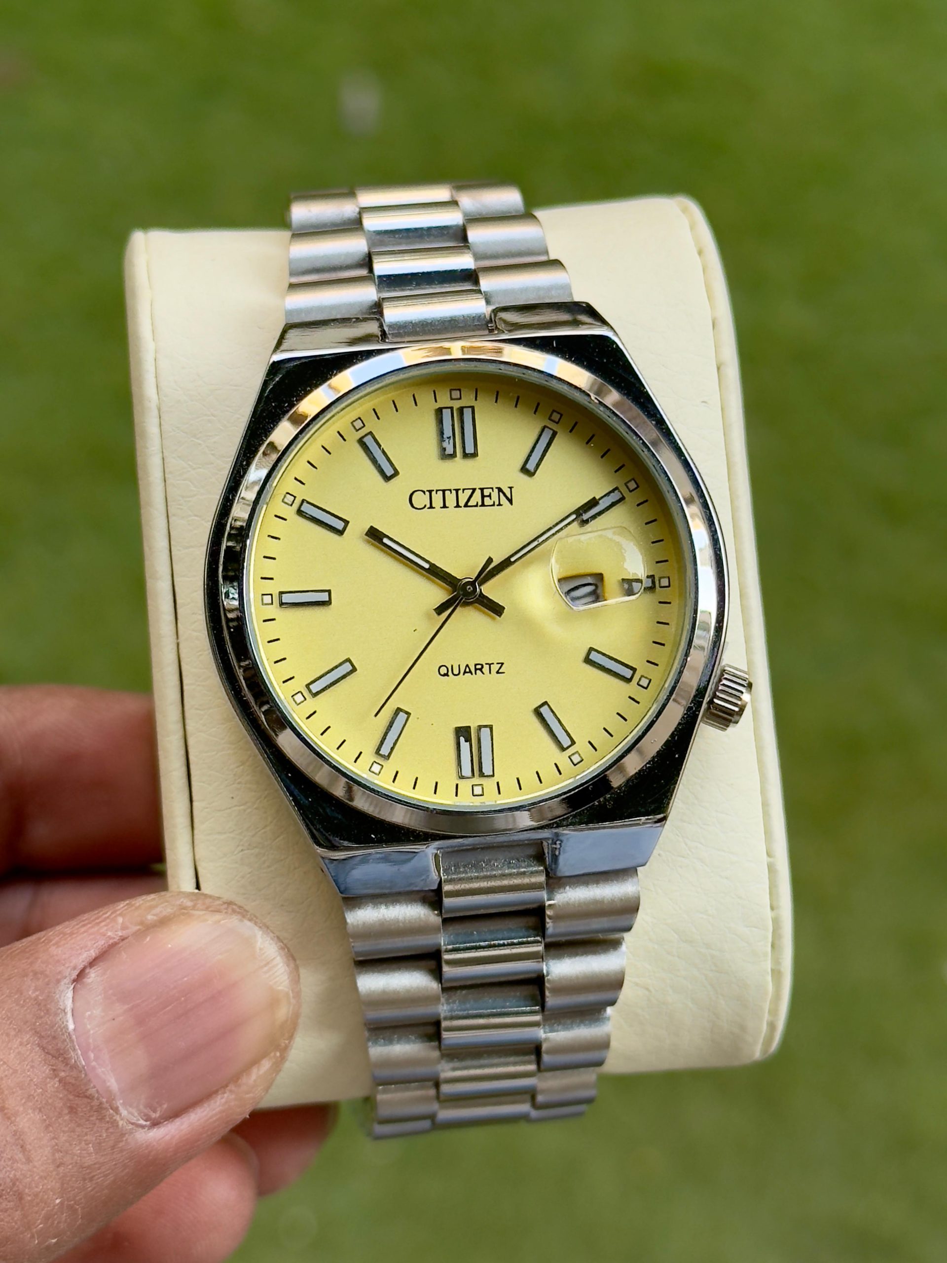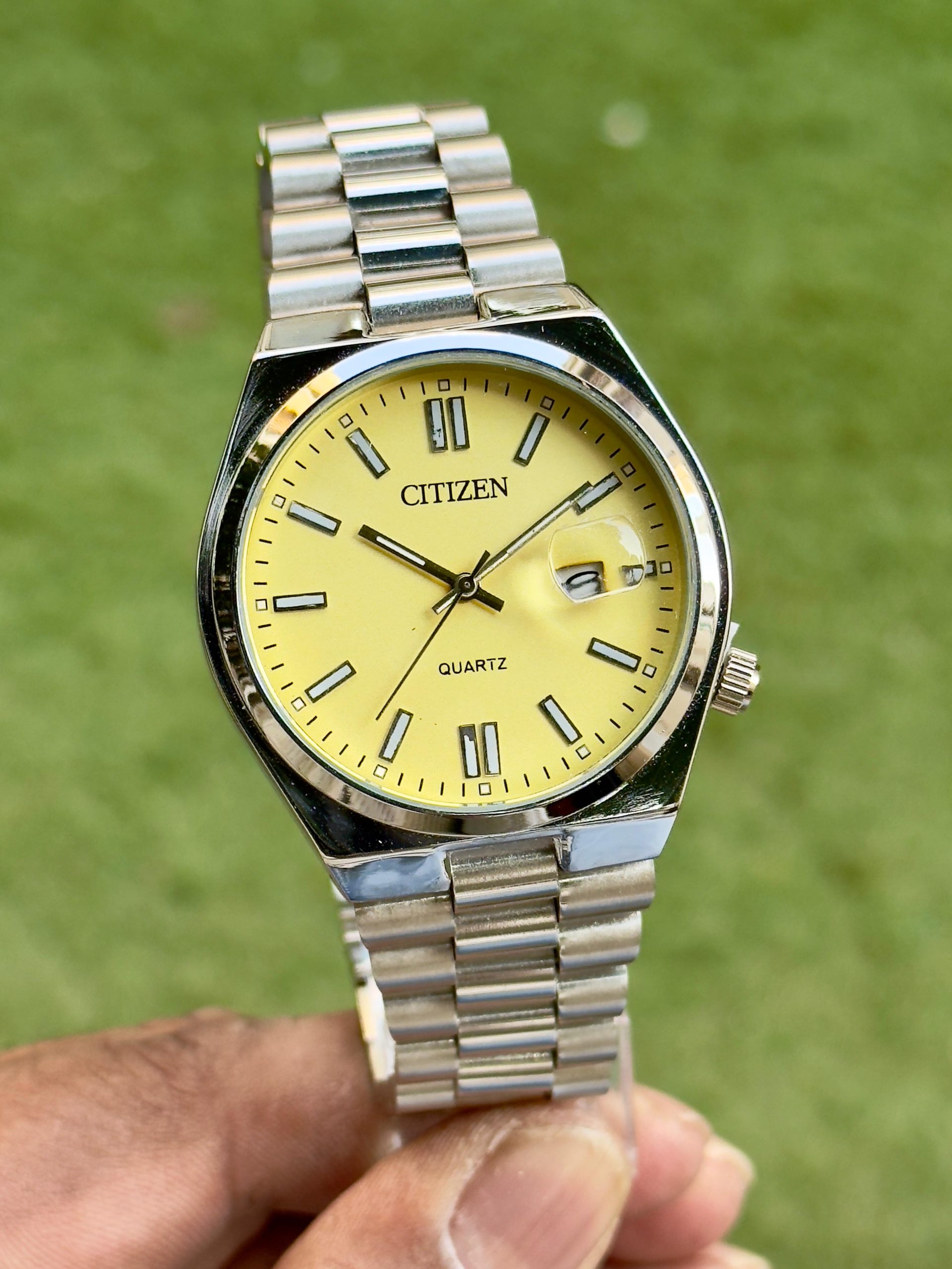 The Citizen Tsuyosa Yellow Dial is a watch that truly stands out. With its vibrant yellow dial, it’s the perfect accessory for those who want to add a splash of color to their style while enjoying the reliability of a well-crafted watch. The quartz movement ensures that you’ll always be on time, while the date window with magnifying glass makes checking the date a breeze.