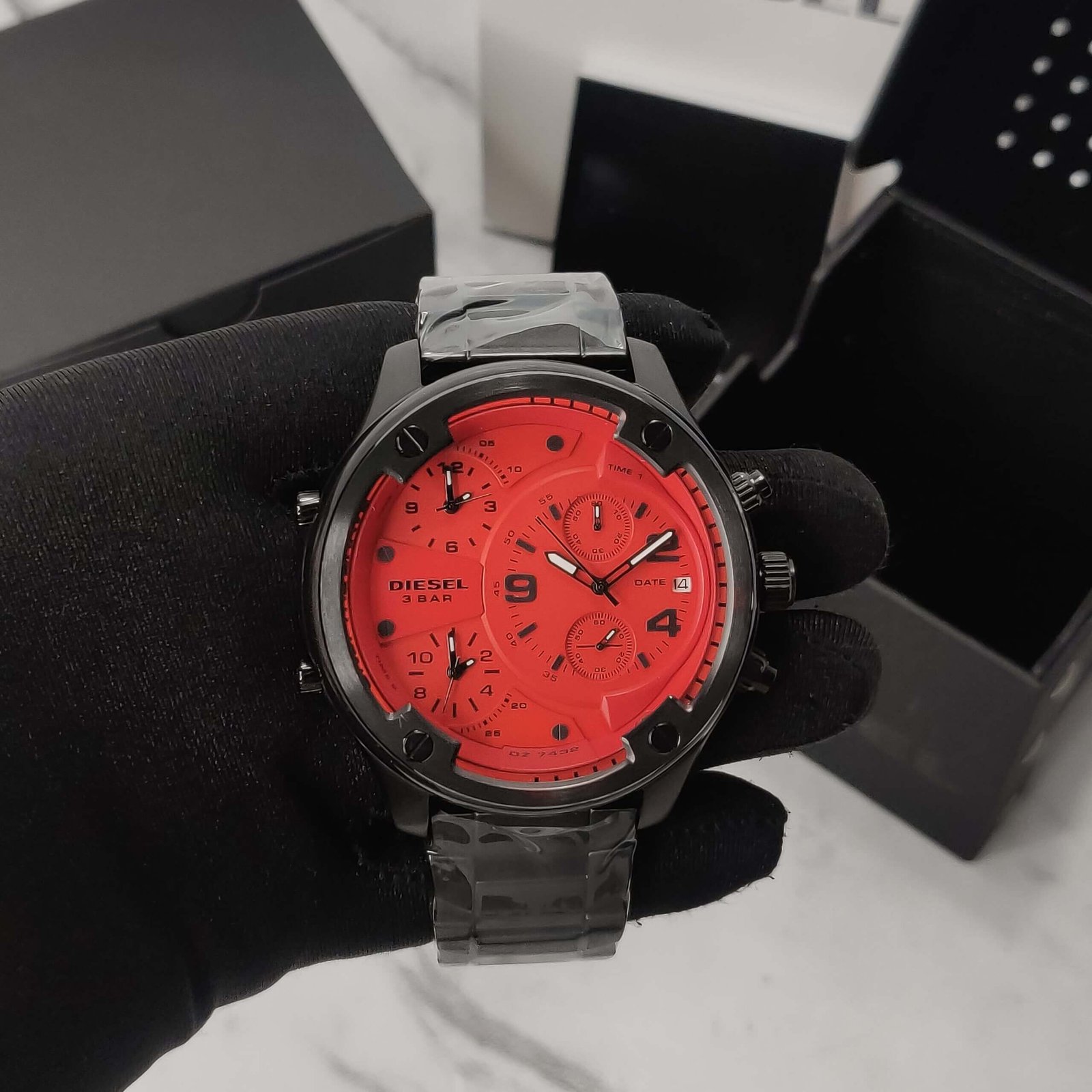 The Diesel Black Boltdown DZ7432 Chronograph is a bold statement piece that effortlessly combines functionality and style. With its striking orange dial featuring multiple timing dials, this watch is perfect for those who appreciate precision and aesthetics. The robust 56mm stainless steel black case not only offers a commanding presence on your wrist but also ensures durability.