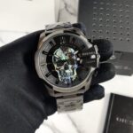 Finished with a robust stainless-steel black chain and a secure deployment clasp, this watch is made for those who appreciate both fashion and function.
