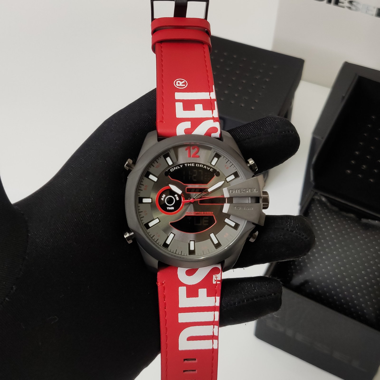 What I love about this watch is its practicality, with features like a calendar that extends all the way to 2099, and an EL backlight that makes it easy to read in any lighting. The high-grade red silicone strap adds a touch of flair and comfort, making it easy to wear all day. Whether you’re heading to the office or out for a casual weekend, the Diesel Megachief is a versatile companion.