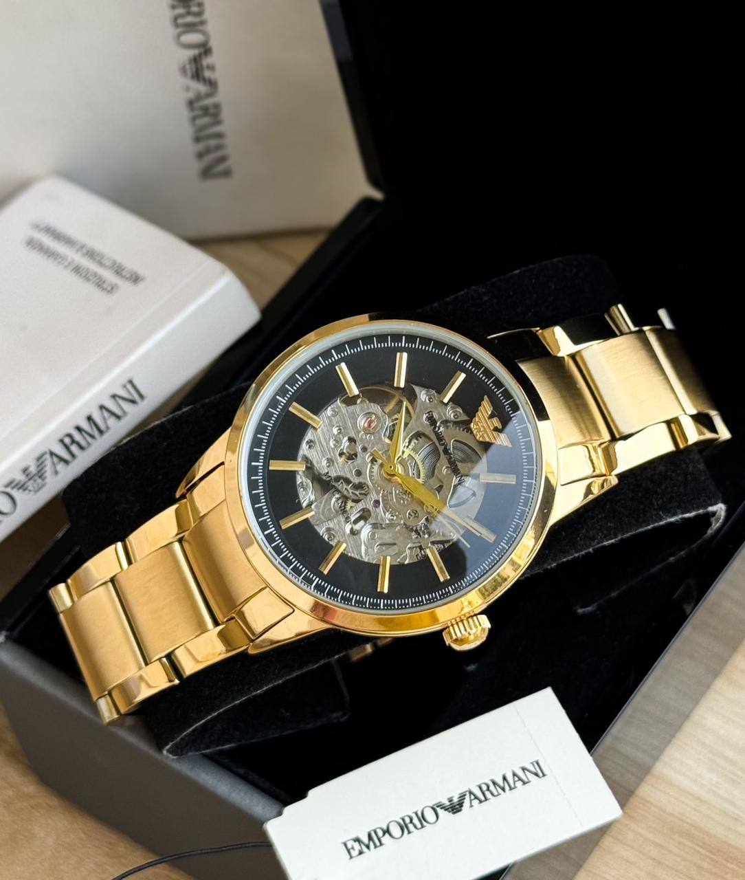 This is of Emporio Armani Gold Skeleton Black Dial.