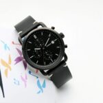 The sleek stainless steel case adds a touch of sophistication, and the black leather strap not only looks great but also guarantees comfort. Whether you’re at the office or out on the weekends, this watch effortlessly complements any outfit.