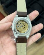 With its striking matt silver case and bezel, this watch is designed to make a statement on any wrist. The open case back allows you to appreciate the mechanical movement at work, reflecting the beauty of engineering.