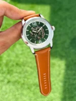 This is of FOSSIL Heritage Green Skeleton Dial Leather Strap Watch.