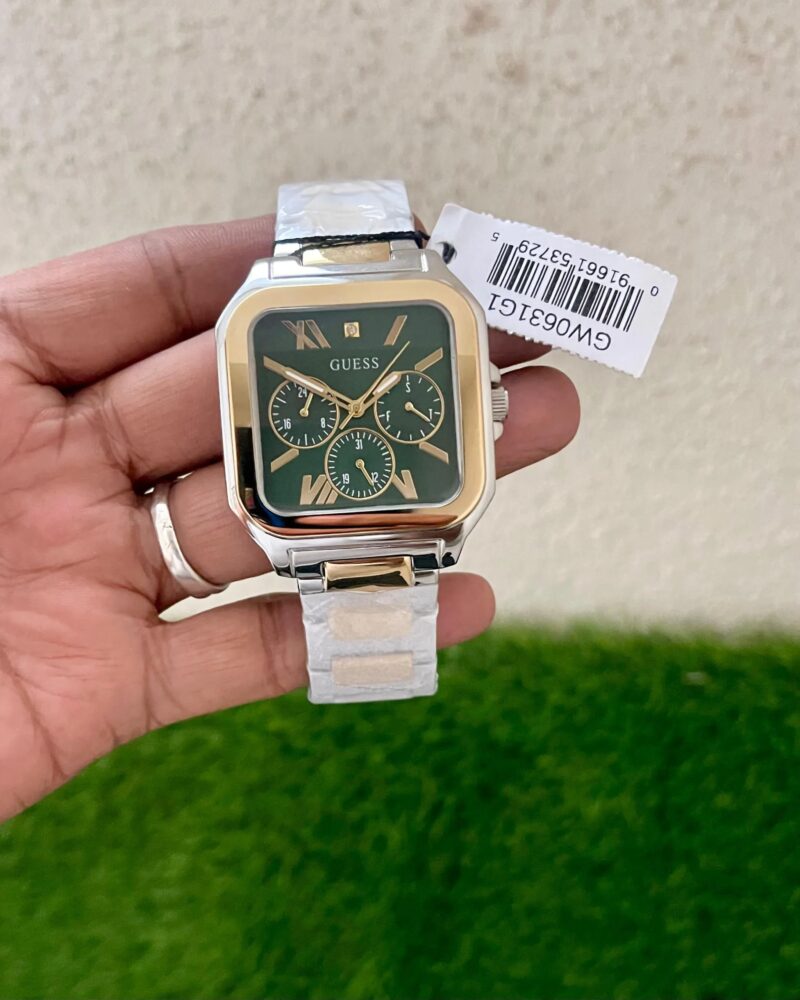 The Guess Integrity Square Green Dial watch is a stylish statement piece that perfectly blends modern design with functionality. Its striking green dial is not just about looks; it captures attention while ensuring you stay punctual throughout your day. The 42mm stainless steel case protects the vibrant square dial, embodying both durability and elegance.