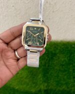 - Square dial with an eye-catching green finish
