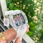 Crafted with a durable mineral crystal glass and a transparent case, this watch is designed to withstand daily wear while maintaining its striking appearance. The genuine white silicone belt adds a touch of comfort, making it ideal for all-day wear. Plus, with the added assurance of a 1-year seller warranty for machinery, you can trust in its quality and performance.