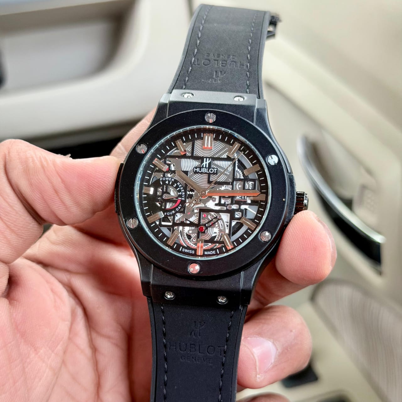 The Hublot Black Dial Quartz Timepiece is a striking choice for anyone looking to combine elegance with functionality. The full black design exudes a sense of modern sophistication, making it a versatile accessory for any occasion.