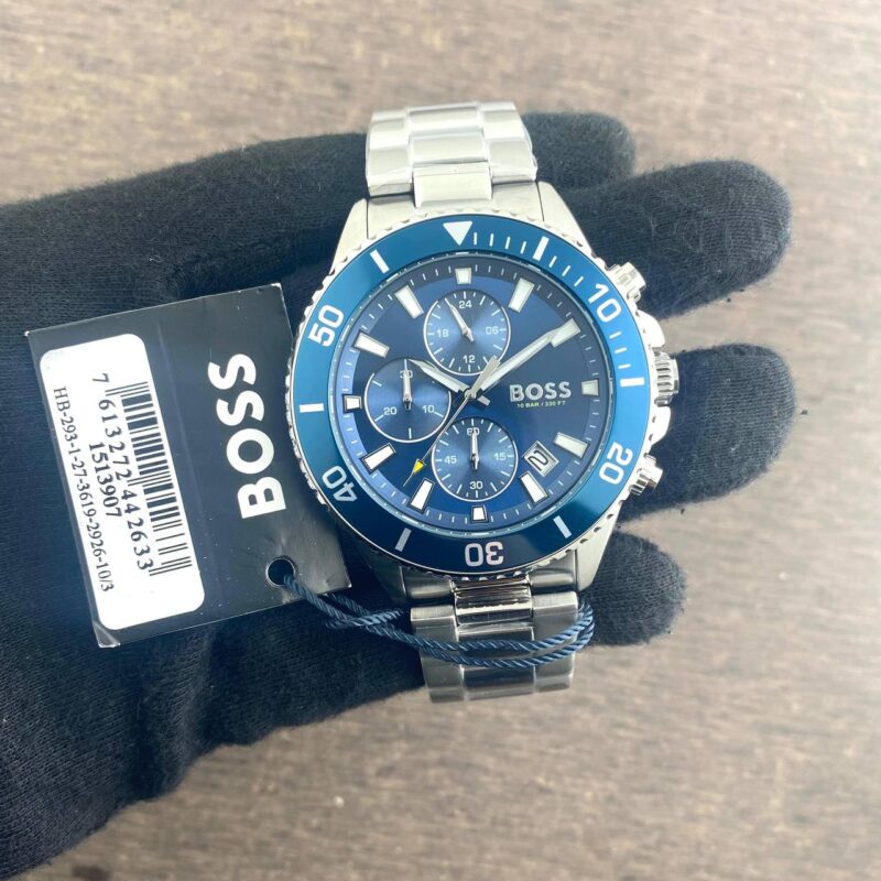 The Hugo Boss Admiral Chronograph is a watch that effortlessly combines style and functionality. With its bold blue dial and matching bezel, this timepiece captures attention while remaining sophisticated. The luminescent hands and indexes ensure you can read the time in any light, making it as practical as it is stylish.