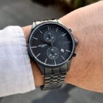 The durable IGP color coating promises no fading or rusting, ensuring that your watch remains in pristine condition for years. Plus, with a water resistance of up to 5 BAR, it’s ready for any adventure. Experience the blend of quality and craftsmanship with the Hugo Boss Associate Chronograph, a watch that reflects your dynamic lifestyle.