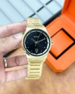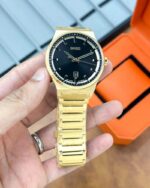 The luminous black dial with gold-tone markers ensures that you can read the time effortlessly, even in dim lighting. Powered by a reliable Quartz Miyota movement, this watch is not only precise but also comes with a one-year warranty, adding to its appeal.