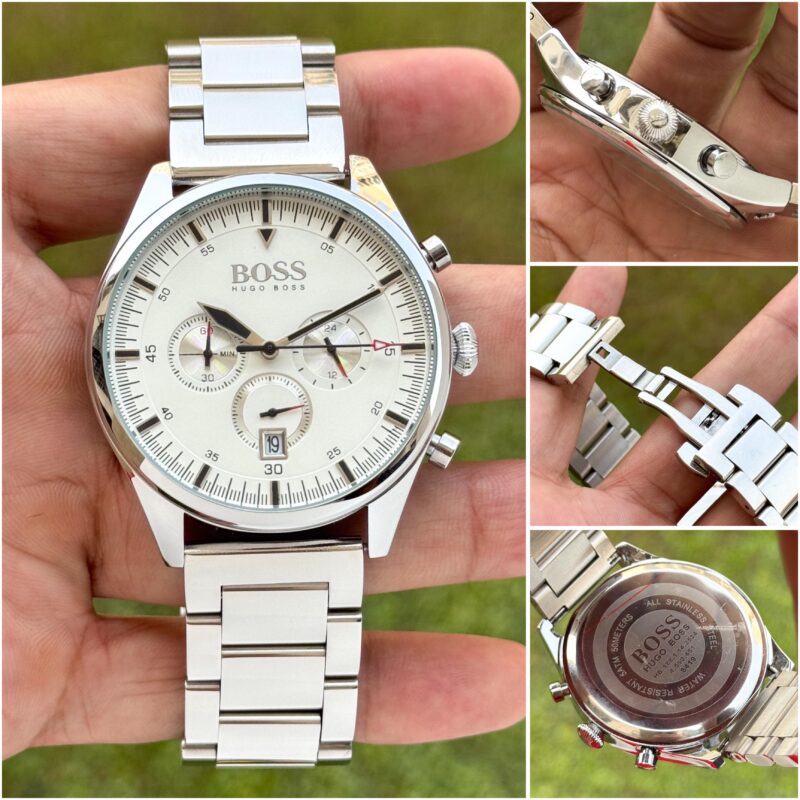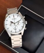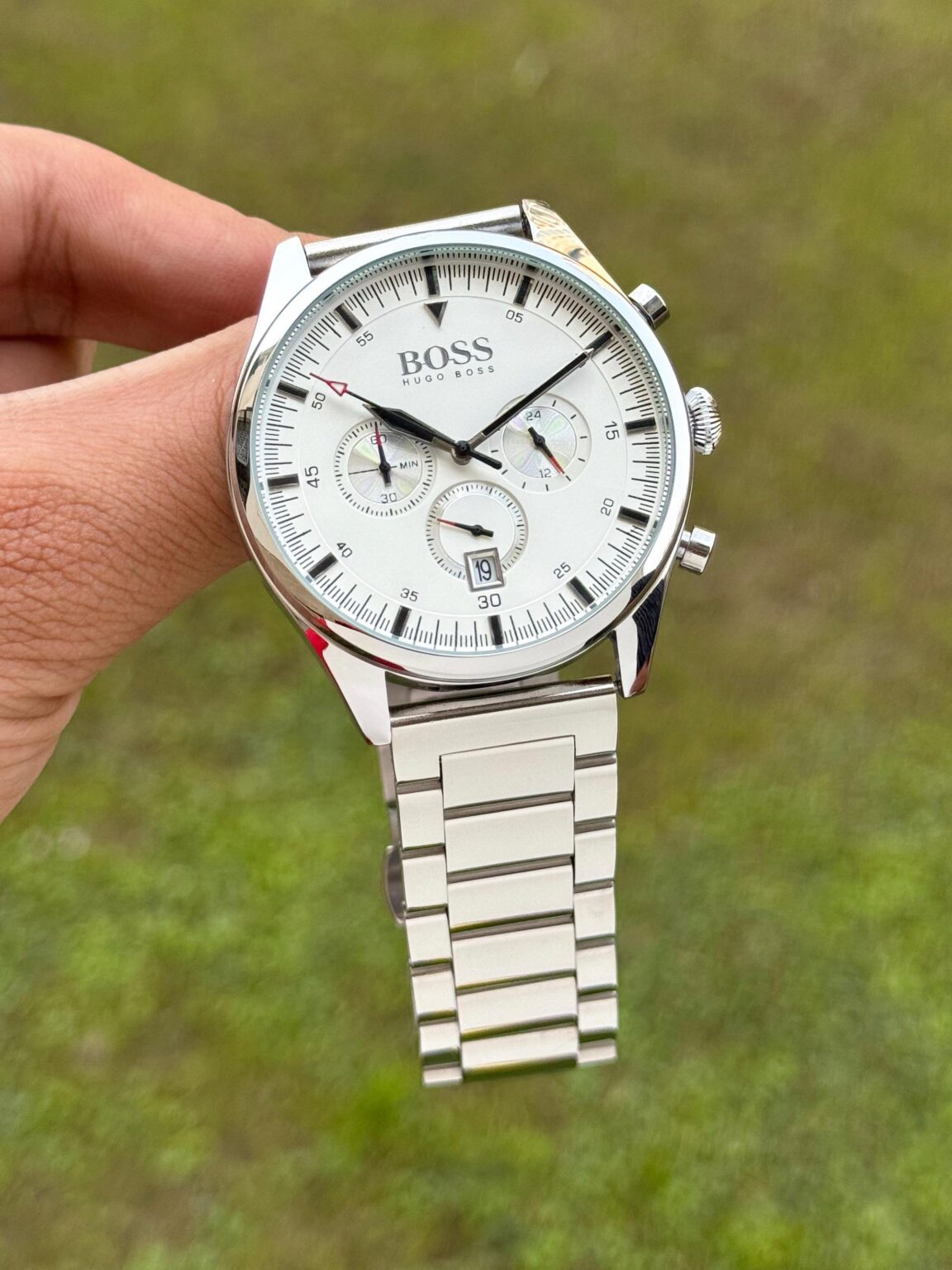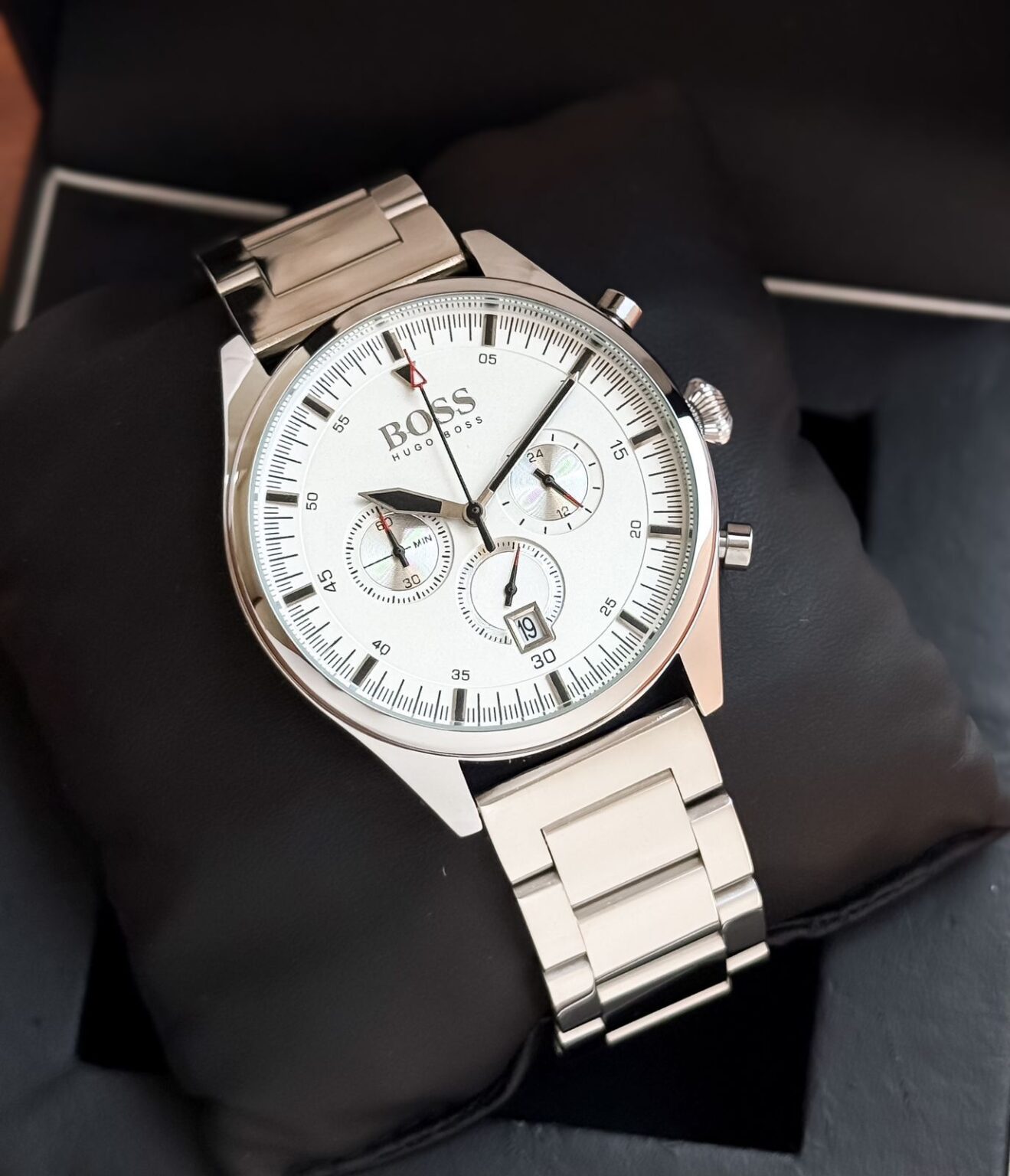 The Hugo Boss Chronograph Silver Dial is a perfect blend of functionality and style. With its stunning white dial and sleek stainless steel case, this watch is designed to make a statement. The chronograph function allows you to keep track of time with precision, while the date indicator ensures you never miss an important date.