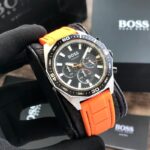 - Orange rubber strap for a sporty touch