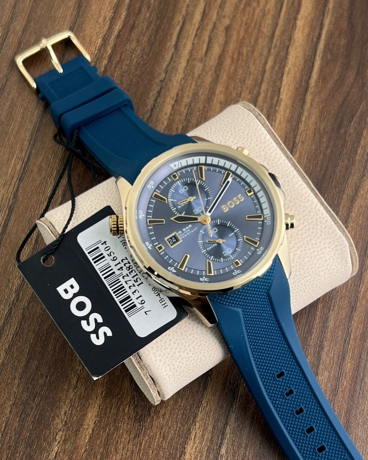 The Hugo Boss GLOBETROTTER 1513822 is the ideal companion for anyone who values both style and functionality. The bold blue dial, complemented by luminous indexes, offers a striking look that is easy to read in various lighting conditions. Whether you’re at a business meeting or enjoying a casual outing, this watch makes a statement.