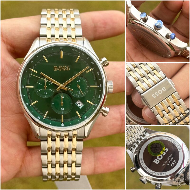 The Hugo Boss Silver Green Dial Chronograph is a stunning piece that effortlessly combines style and functionality. The striking green dial set against the sleek silver bezel creates a perfect fusion of professionalism and modern flair. Whether you’re heading to the office or out for a casual dinner, this watch adapts seamlessly to any occasion.