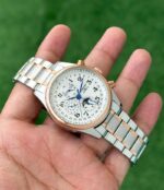 One of the standout features is the dedicated moon phase display, which adds a touch of elegance and sophistication. The stainless steel bracelet with its two-tone finish is both durable and stylish, making it perfect for any occasion.