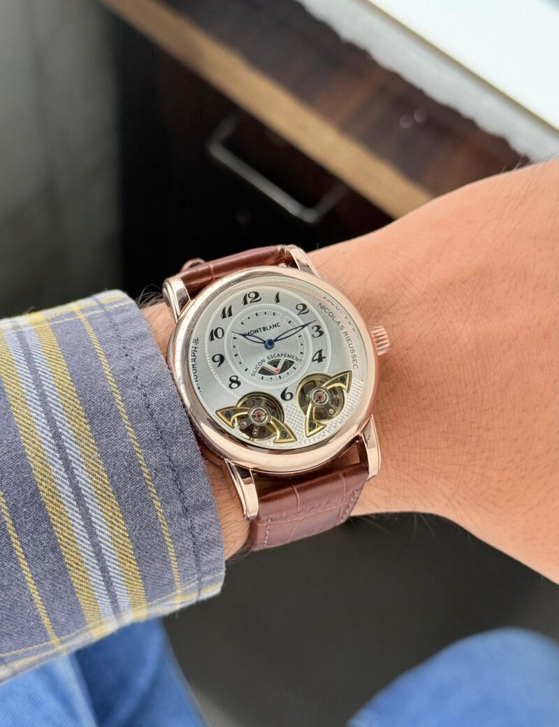 The Montblanc Open Heart Mechanical watch is a stunning piece that perfectly blends artistry and engineering. With a bold 44mm dial, this watch not only tells time but also showcases the intricate workings of its automatic movement through the open heart design, which is mesmerizing to observe.
