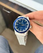 The Omega Seamaster 300 Heritage is a remarkable timepiece for those who appreciate both style and functionality. Its striking blue dial is complemented by luminous markers, ensuring you can read the time effortlessly, day or night. The domed sapphire-crystal glass not only enhances its elegance but also provides exceptional scratch resistance.