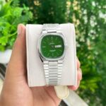 - Exceptional green dial with day and date indicator