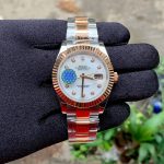The Oyster Perpetual DateJust is a testament to timeless design and function. With its elegant white dial and striking rose gold fluted bezel, this watch merges sophistication with everyday practicality. The 41mm size makes it a perfect fit for any wrist, while the working 24-hour feature allows for precise timekeeping, whether you’re at the office or on an adventure.