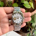 The Oyster Perpetual Datejust is truly a watch that embodies elegance and functionality. With its 41mm case size, it fits comfortably on the wrist while making a bold statement. The white dial paired with silver hour markers not only enhances visibility but also adds a touch of sophistication.