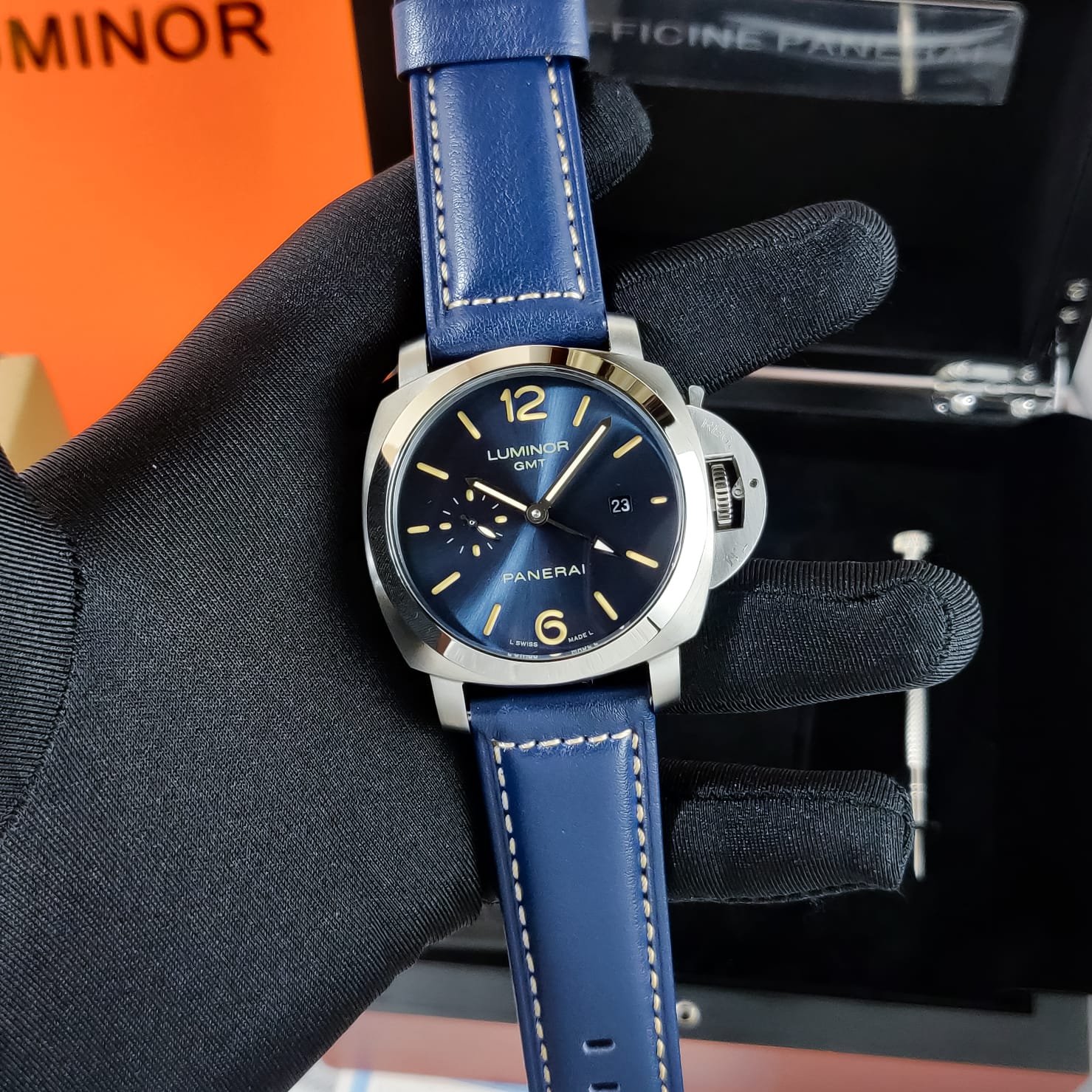 The Panerai GMT Blue Leather Edition is designed for those who seek functionality and style in their watch. The striking blue dial is complemented by luminous hour markers, making it easy to read in any light, while the working GMT function allows you to track multiple time zones effortlessly.