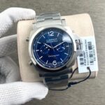 The Panerai GMT Chrono is a remarkable 44MM watch that showcases both style and functionality. With its stunning blue dial and luminous hands, this timepiece is designed for those who appreciate precision and elegance. The anti-reflective sapphire glass ensures that your time is always visible, no matter the lighting conditions.