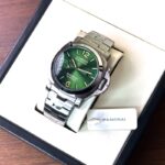 - Round green dial with date window