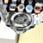What sets this watch apart is the Japanese automatic movement, which ensures reliable performance and precision. The anti-reflective sapphire crystal protects the dial from scratches and enhances visibility. The watch is securely fastened with a high-grade stainless steel strap, complemented by a trapezoidal silver lock that adds to its elegance.