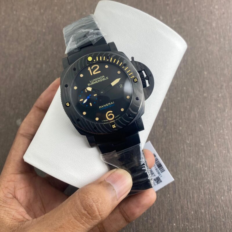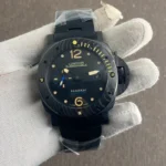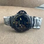 The Panerai Radiomir 7AA is a striking timepiece that effortlessly combines functionality with elegance. Its 44mm stainless steel black matte case offers a bold look while ensuring durability. The black dial adorned with luminous indices and hands not only enhances visibility but also adds a touch of sophistication.