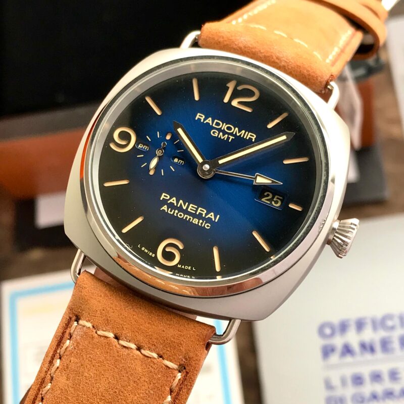The Panerai Radiomir GMT is more than just a watch; it’s an expression of style and precision. With its striking blue dial and 44mm case size, it’s designed to make a statement on your wrist. The sapphire glass enhances durability while allowing you to admire the intricate details of the craftsmanship.