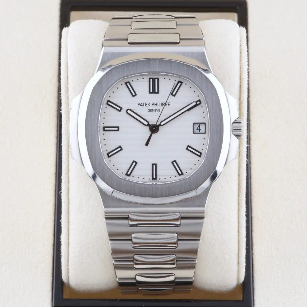 The Patek Philippe 5711/A Nautilus White Watch is a true statement piece for those who appreciate both style and functionality. The striking white dial paired with the sleek silver stainless steel case offers a refined aesthetic that is perfect for any occasion.