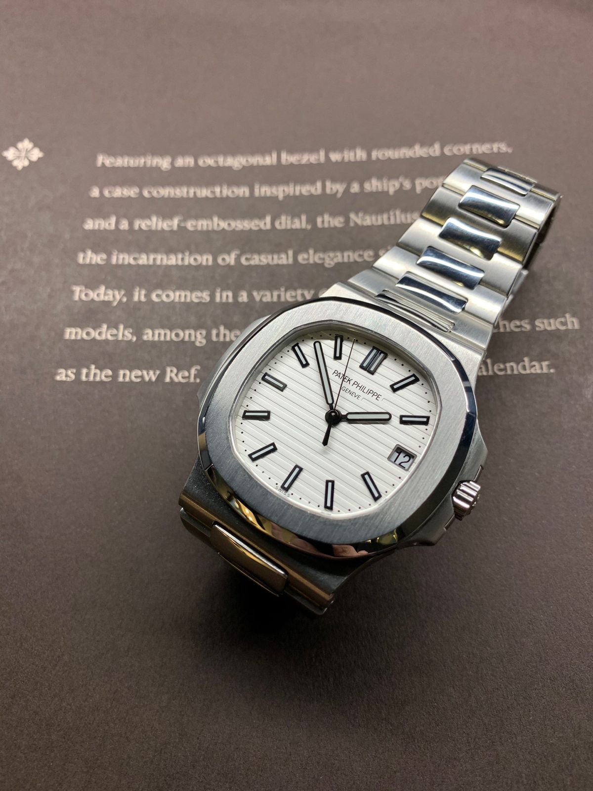 - Clasp: Fold-over clasp featuring the Nautilus emboss and Patek Philippe logo