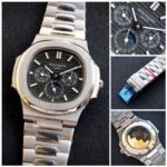 The Patek Philippe 5740/1G Black Watch is a stunning piece that beautifully blends sophistication with functionality. Its 42mm stainless steel case provides a robust yet refined look, making it perfect for any occasion. The original ridged dial adds a touch of uniqueness, while the 12-hour analog display and working chronograph make it not just a style statement but also a practical timekeeper.