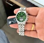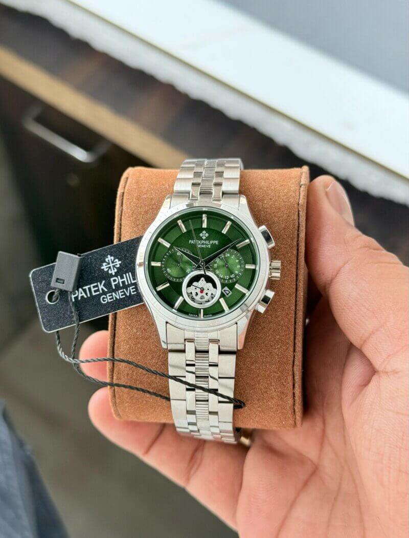 Powered by premium Japanese quality chronograph machinery, this timepiece promises reliability and accuracy. Whether dressing up for a special occasion or enjoying a casual outing, the Patek Philippe Chronograph Green is sure to elevate your style.