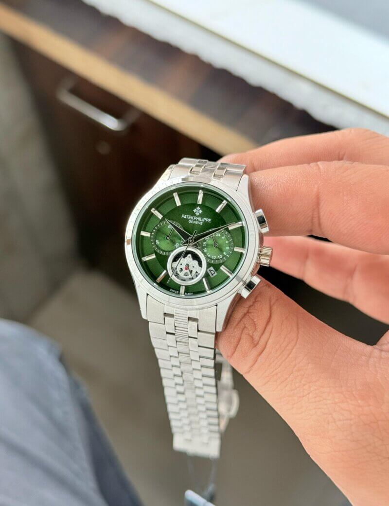 The Patek Philippe Chronograph Green combines style and functionality, featuring a vibrant green dial, stainless steel strap, and premium chronograph movement.