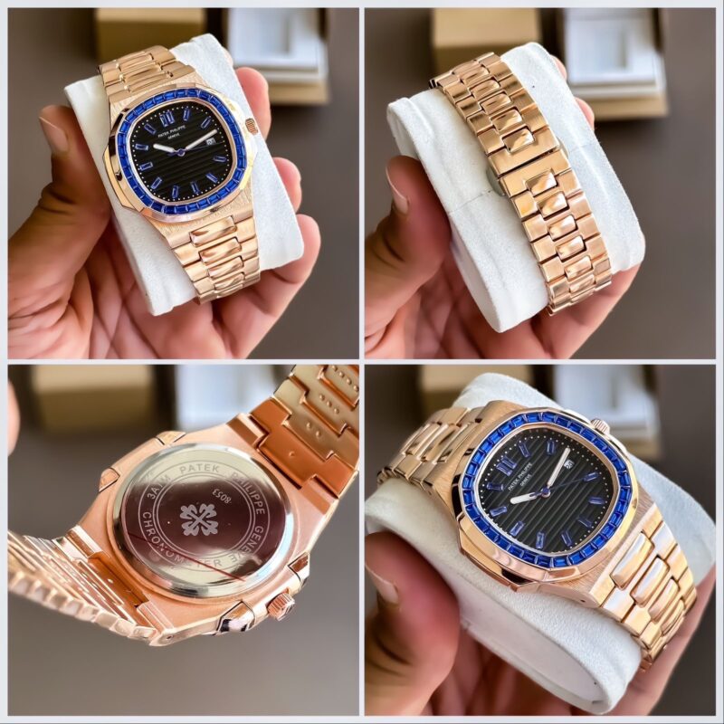 This is of Patek Philippe Nautilus Blue Diamond Bezel Watch.