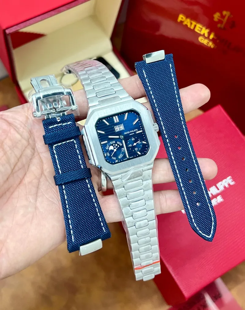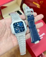 The Patek Philippe Nautilus Cubitus Chronograph is a stunning blend of style and sophistication that every watch enthusiast dreams of having in their collection. The eye-catching sunburst blue dial features an embossed horizontal pattern, making it truly unique. With a 41mm stainless steel case, it presents an elegant yet robust presence on the wrist.